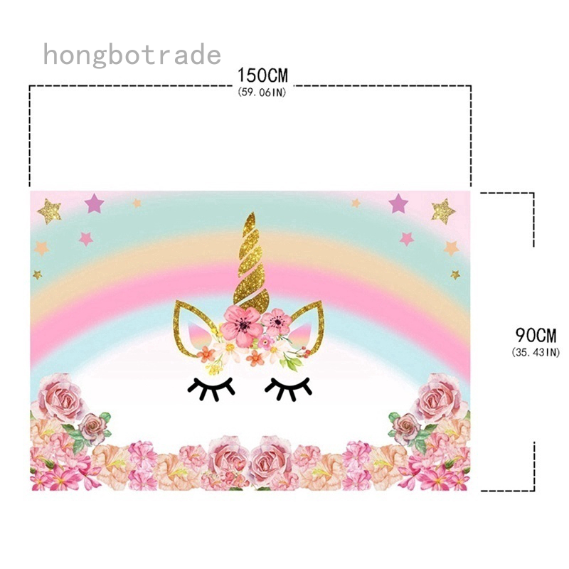 Huayi Custom Baby Birthday Shoot Backdrop Cute Unicorn Head Shower