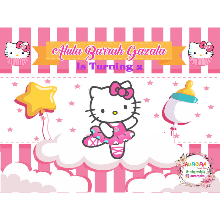 Jual Banner Backdrop Background Ulang Tahun Party Cake Hello Kitty