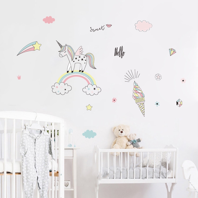 Cute Cartoon Unicorn Wall Stickers For Kids Room Girls Bedroom