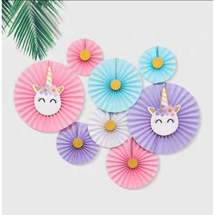 8 In 1 Ins Unicorn Theme Paper Fan Flower Decoration Set Birthday
