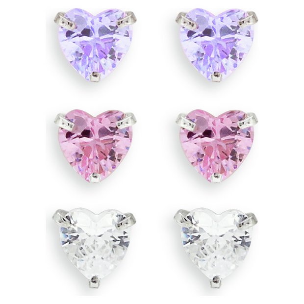 Buy Revere Kid S Sterling Silver Crystal Set Of 3 Stud Earrings Kids Earrings Argos