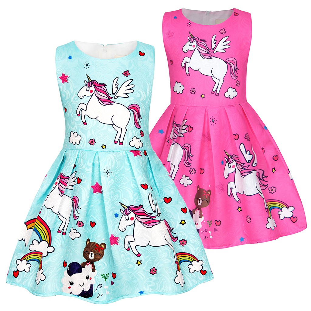 Girls Unicorn Dress Kids Cartoon Printed Costume Sleeveless Party