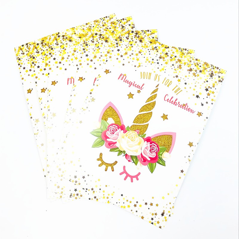 Unicorn Party Invitation Card Baby Shower Glitter Greeting Card