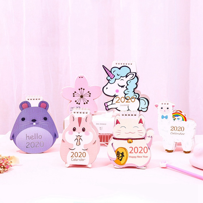 Cartoon Cute 2020 Year Desk Calendar Kawaii Unicorn Shape School