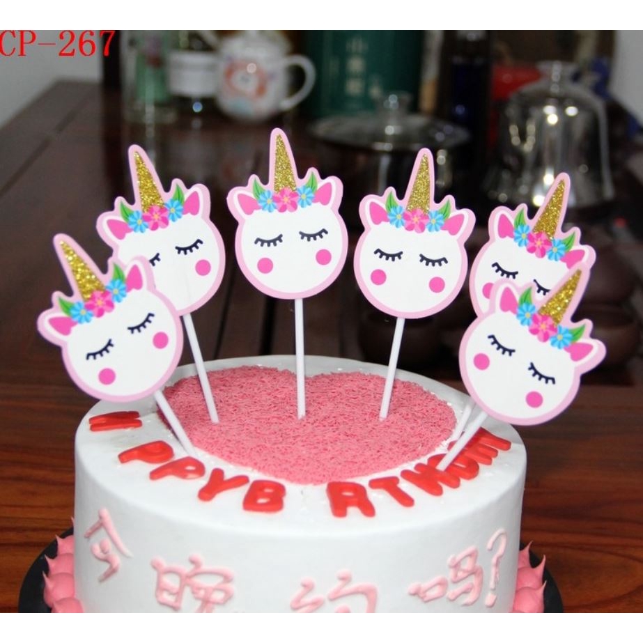 6 Pcs Lot Gold Unicorn Cake Topper Pink Unicorn Cupcake Topper For