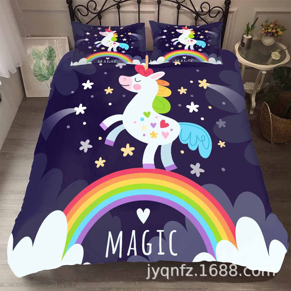 3d Rainbow Cartoon Unicorn Bedding Set Quilt Cover Quilt Duvet