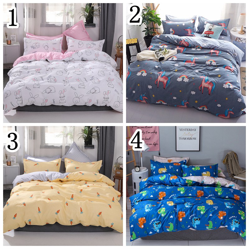 Ready Stock Flamingo Unicorn Bed Sheet Set Cartoon Duvet Cover