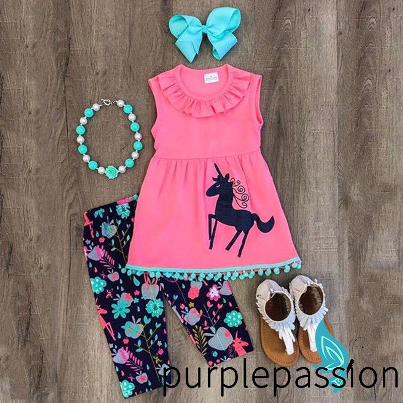 Dpi Cute Kids Baby Girls Flowers Unicorn Dress Vest Top Pants