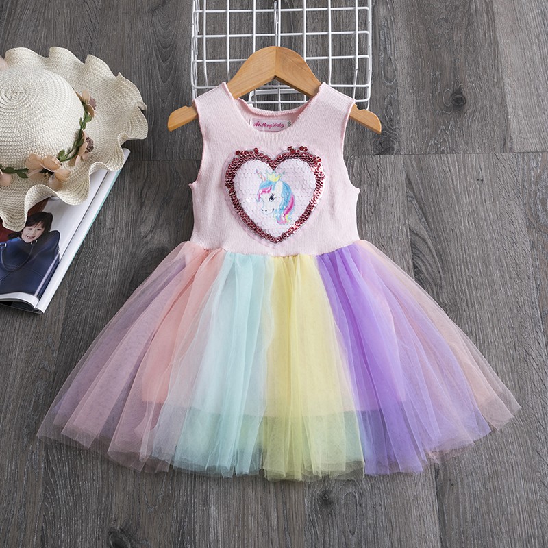 Vikita Girls Unicorn Tutu Dress Kids Sequined Princess Vestido