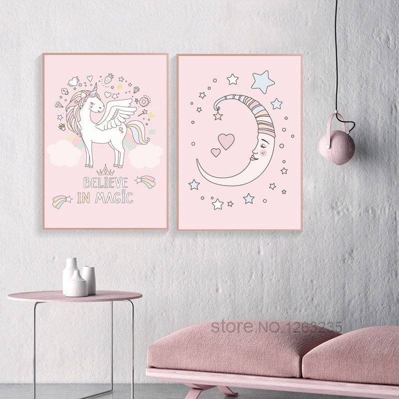 Baby Girl Unicorn Decor Wall Art Queen Posters Magic Canvas