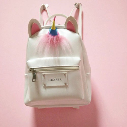 Korean Cute Unicorn Backpack Purse White Cartoon Cat Mochila