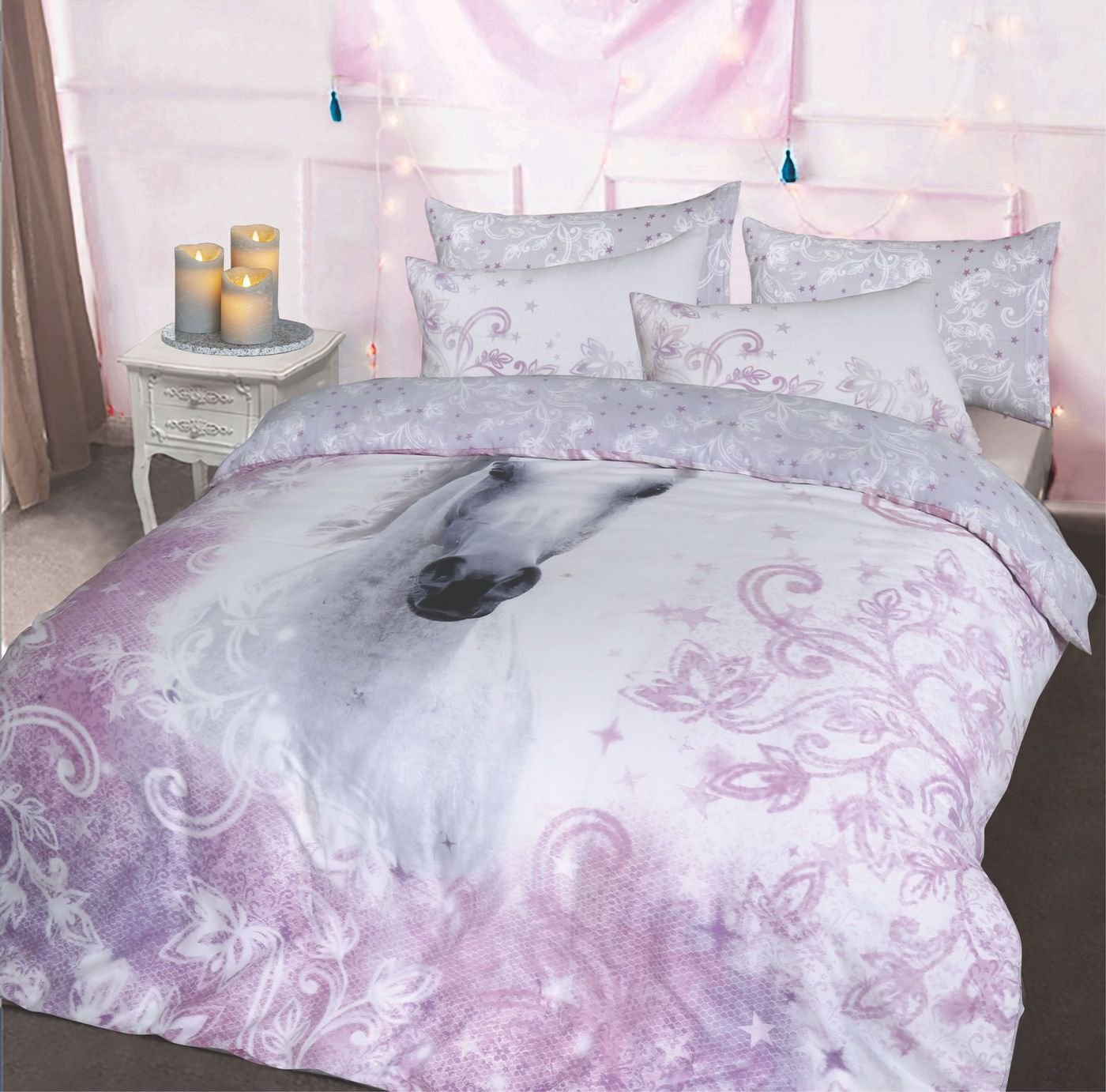 Single Unicorns Duvet Set Curtains Girls Unicorn Stars