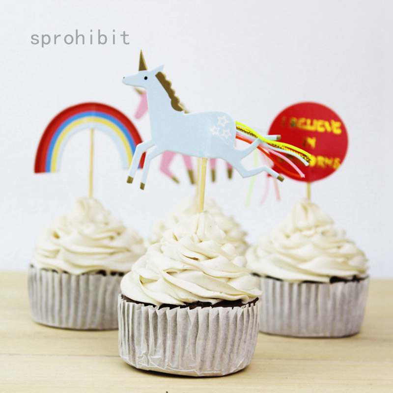 Sprohibit Colorful Rainbow Unicorn Cake Cupcake Toppers Picks Baby