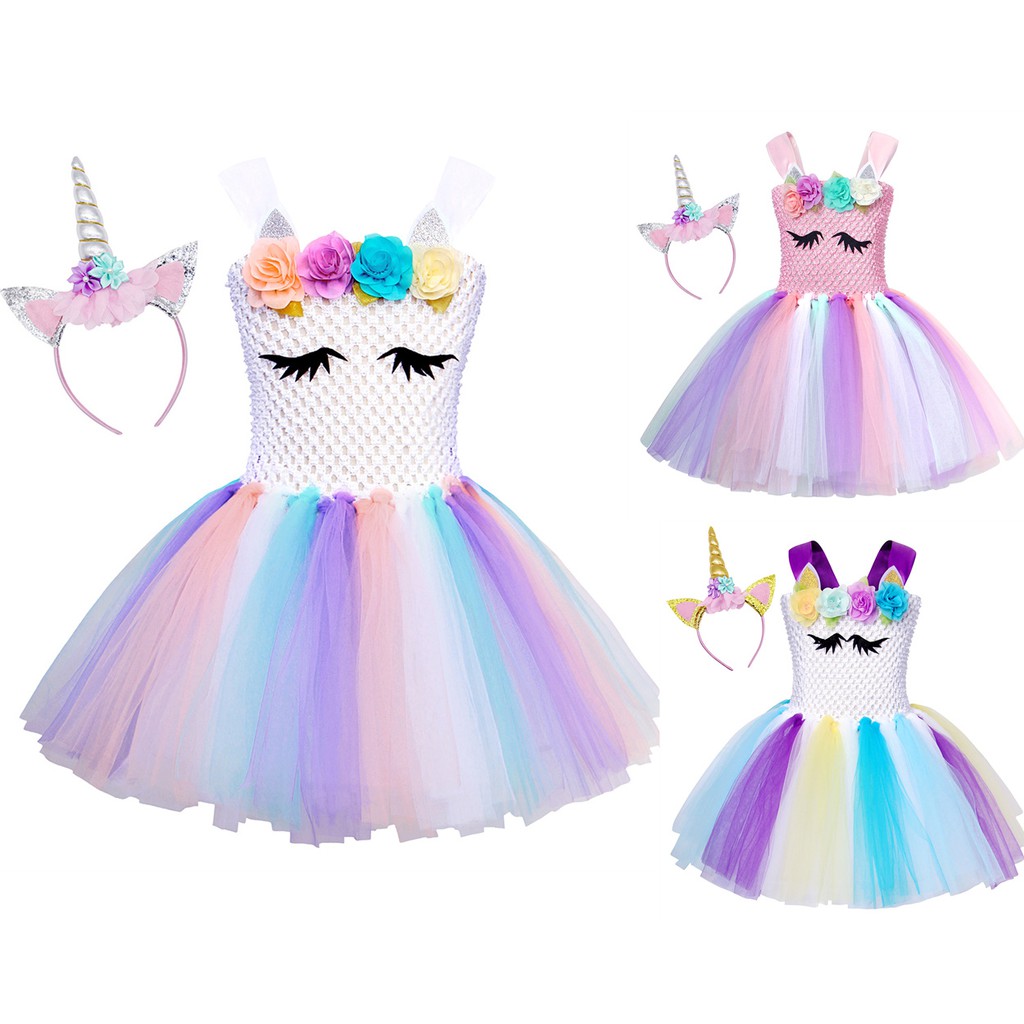 Girls Unicorn Dresses For Kids Birthday Party Dress Up Fancy