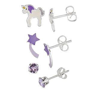 Charming Girl Kids Sterling Silver Unicorn Crystal Stud Earring Set