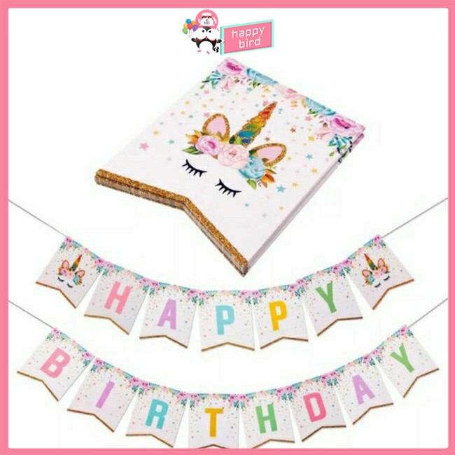 Unik Grosir Per 6 Pcs Import Banner Rangkai Unicorn Happy Birthday
