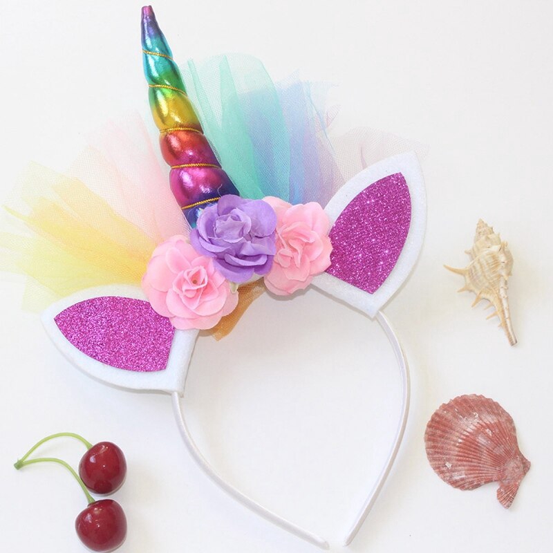 1 Pc Rainbow Unicorn Horn Hairband Kids Chiffon Unicorn Headband