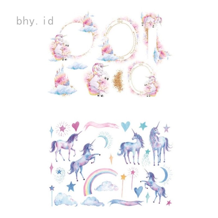 Jual 2 Lembar Stiker Desain Unicorn Kawaii Untuk Dekorasi