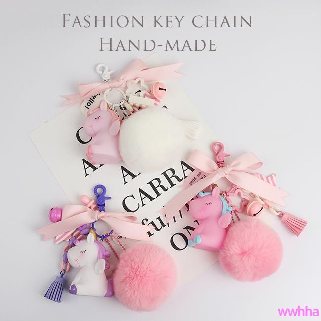 Handmade Thời Trang Han Quốc Mini Unicorn Keychain Hinh Dạng Con