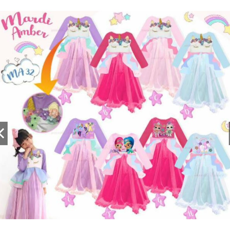 Gamis Bordir Unicorn Mu Little Pony Lol Shimer N Shine Gamis