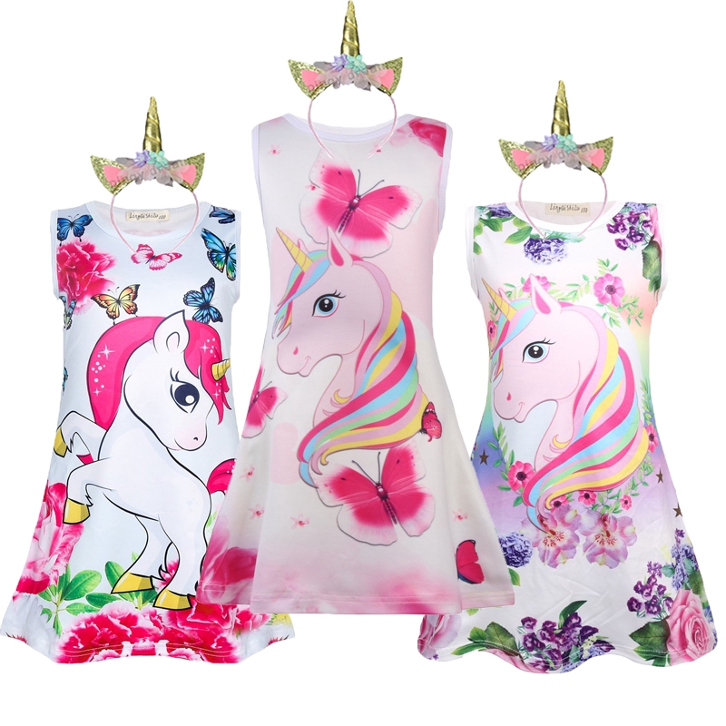 Terlaris 2019 Fashion Unicorn Dress For Girls Childrens Clothes