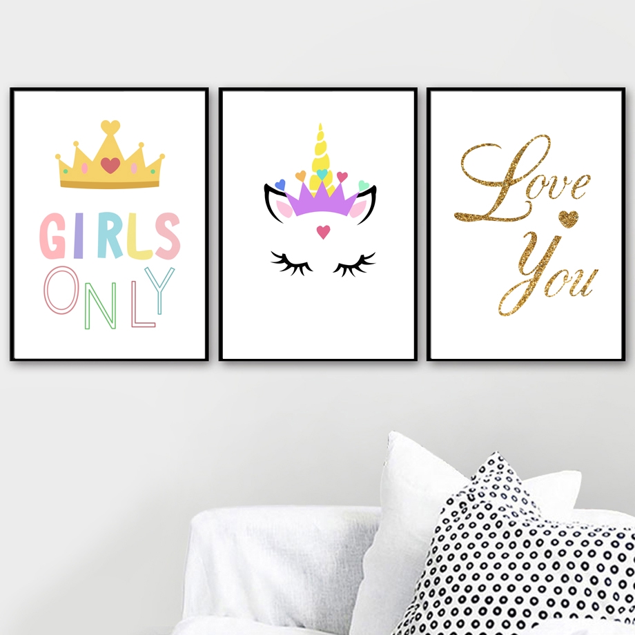 Girl Unicorn Quotes Love You Canvas Painting Nordic Posters And