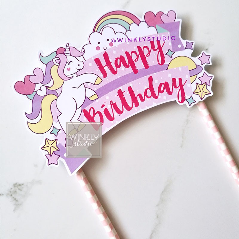 Big Sale Topper Cake Birthday Unicorn Rainbow Custom Peralatan Masak Lainnya Dapur Rumah Tangga Bukalapak Com Inkuiri Com