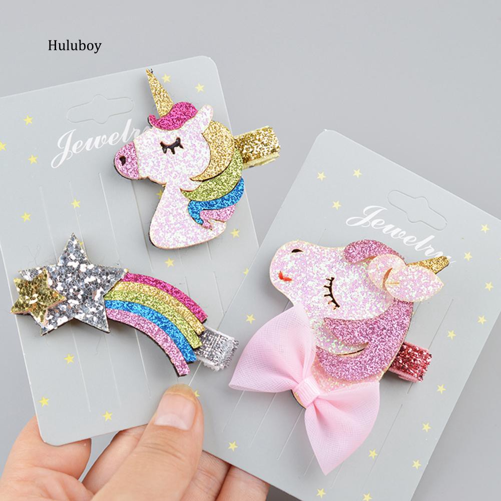 Pt Fashion Glitter Unicorn Rainbow Kids Baby Girls Hairpin Clip On