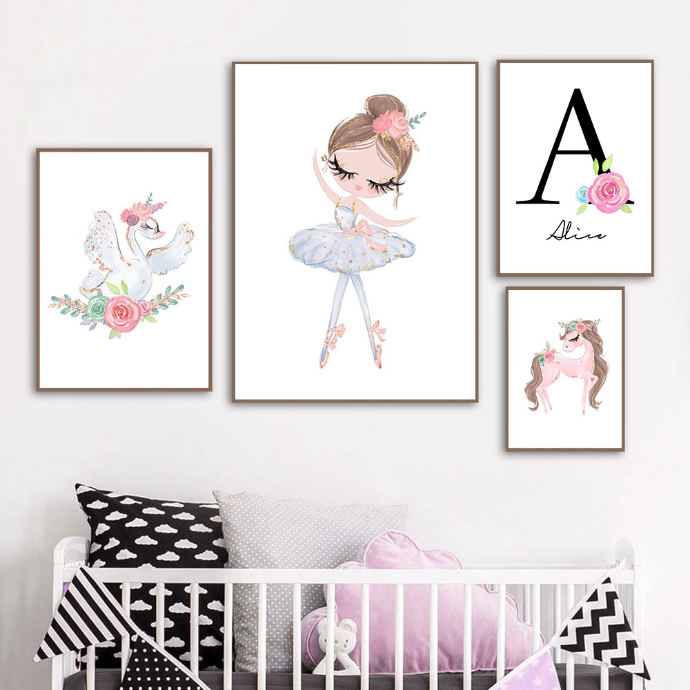 Ballet Princess Nursery Nordic Poster Unicorn Wall Art Canvas