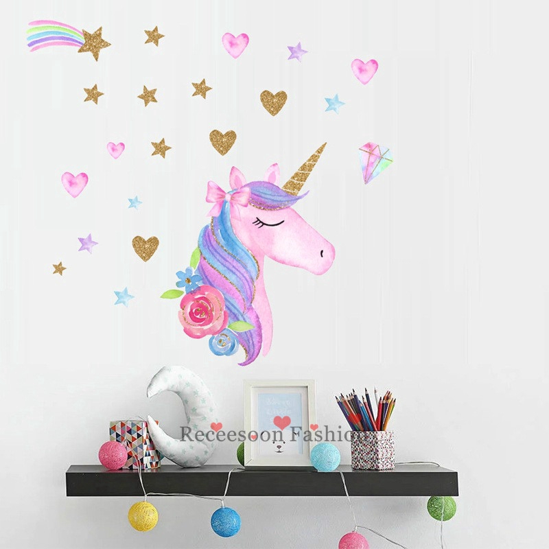 Unicorn Wall Decals Cartoon Wallpaper Sticker Home Decor Shopee