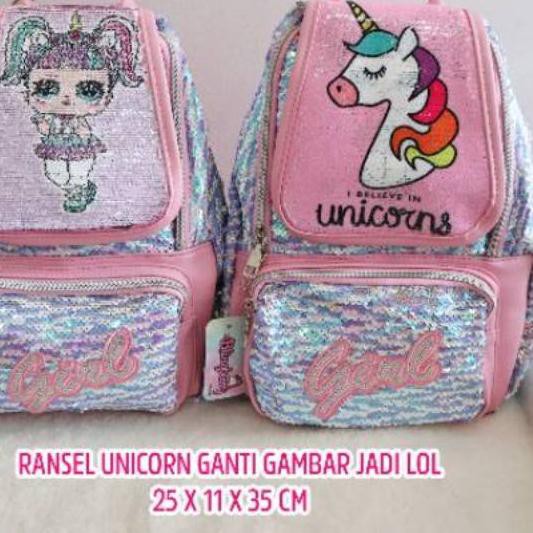 X Jl066 I Ori Ready Unicorn Backpack Sequin Bisa Ganti Gambar