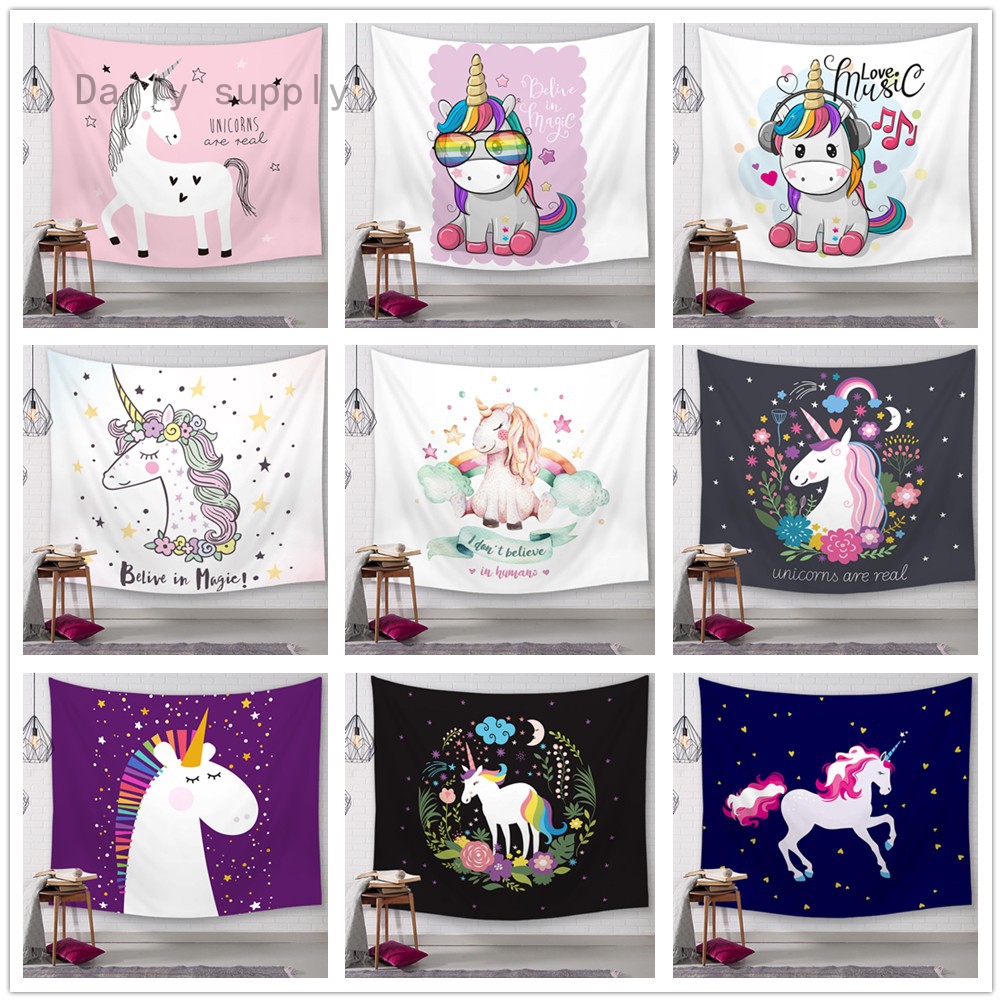 Unicorn Printing Tapestry Wall Hanging Beach Towel Yoga Mat Family Adorn Shopee Malaysia