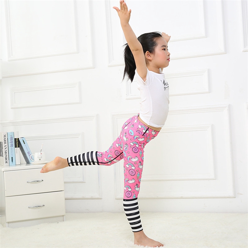 Girls Cute Unicorn Yoga Pants Stripes Elastic Sports Pants Quick